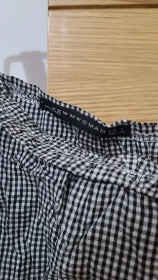 Vestido de verano con estampado de cuadros. - Diseño con tirantes. - Falda con volante.