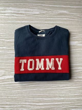 Sudadera de Tommy Jeans con un diseño llamativo. - Detalle de banda horizontal roja en el centro. - Logo de Tommy Jeans bordado en blanco sobre la banda roja. - Cuello redondo y manga larga. ¡Haz tu oferta!🤝