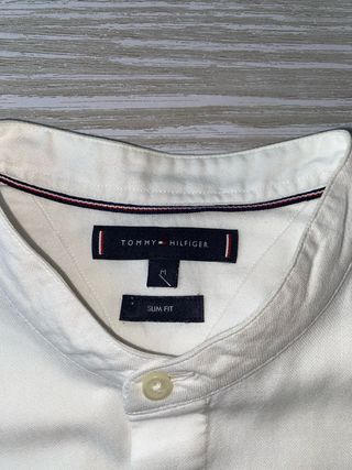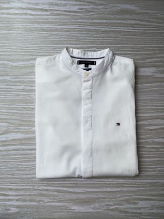 Camisa de vestir Tommy Hilfiger en color blanco. Presenta un diseño moderno con cuello mao. ¡Haz tu oferta! 🤝 - Cuello mao. - Logo de la marca bordado en la manga.