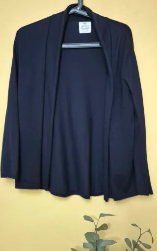Chaqueta de punto fina de color azul marino. - Diseño abierto. - Manga larga. - Tacto suave.