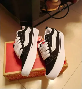 Zapatillas Vans Knu Skool en talla 37. Un clásico renovado con un diseño icónico. - Combinación de colores negro y blanco. - Cierre de cordones. - Suela de goma vulcanizada.