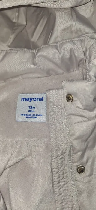 Abrigo acolchado de color beige. Es una prenda cómoda y cálida. - Cierre de botones a presión. - Forro interior suave. - Diseño acolchado. Es de 12 meses pwro da mas talla yo se lo he puesto a mi hija hasta los 24 meses