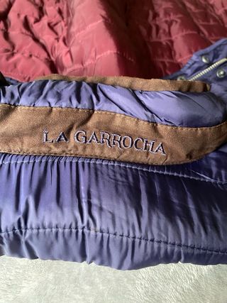 Chaleco reversible de la marca La Garrocha. - Un lado es azul marino con acolchado horizontal. - El otro lado es de color burdeos. - Cuello con detalle en marrón. - Bolsillos laterales con cremallera.