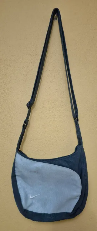 Bolso bandolera de la marca Nike, con un diseño moderno y práctico. - Combinación de colores azul y blanco. - Correa ajustable para mayor comodidad.