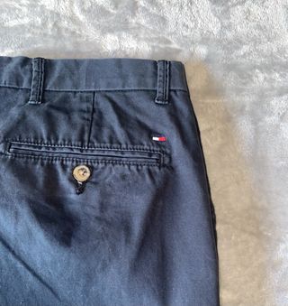 Pantalones tipo chino de la marca Tommy Hilfiger. ¡Haz una oferta! 🤝 - Color azul marino. - Detalle de bolsillo trasero con botón. - Pequeño logo de la marca en la parte trasera.