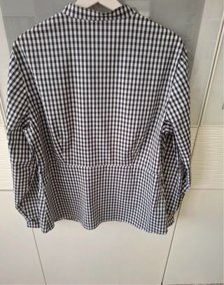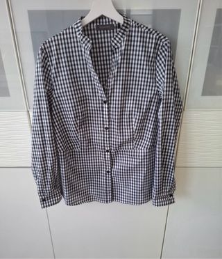 Camisa entallada de la marca Elena Miro con estampado de cuadros. - Diseño de cuello mao. - Cierre de botones. - Mangas largas.