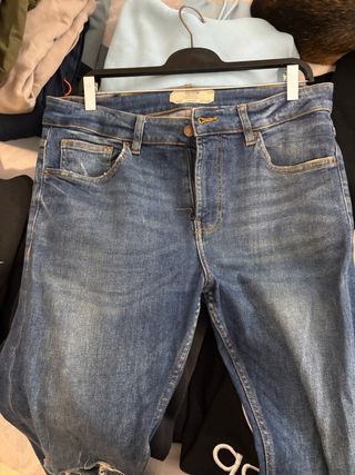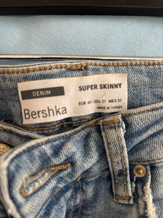 Vaqueros de corte super skinny de la marca Bershka. - Diseño desgastado con rotos. - Cierre de cremallera y botón.