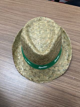 Sombrero de paja con cinta verde de Sprite. Uno por 3€ Dos por 5€ - Material tejido. - Diseño de paja.