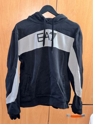 Sudadera con capucha de Emporio Armani. - Diseño con banda horizontal blanca en el pecho. - Logo EA en relieve. - Mangas con detalles blancos. - Bolsillo frontal tipo canguro.