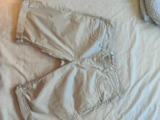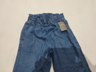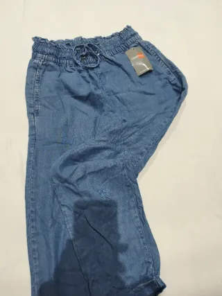 Pantalones vaqueros de corte moderno con cintura elástica y cordón, tela muy fresquita y con mucha caída, es una talla S grande - Cintura con elástico fruncido. - Cordón ajustable en la cintura. - Bolsillos laterales.