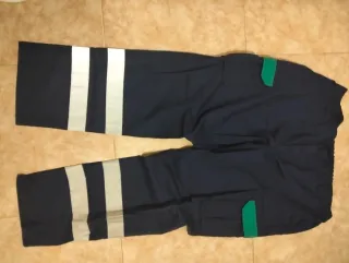 Pantalón de trabajo resistente y cómodo, con detalles de alta visibilidad, talla 58. - Dos bandas reflectantes en cada pierna. - Bolsillos laterales con solapa y cierre de velcro. - Detalle de cinta verde en los bolsillos. Solo envios.