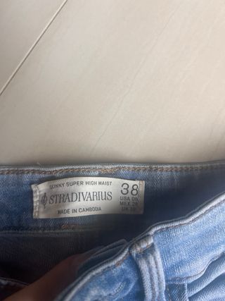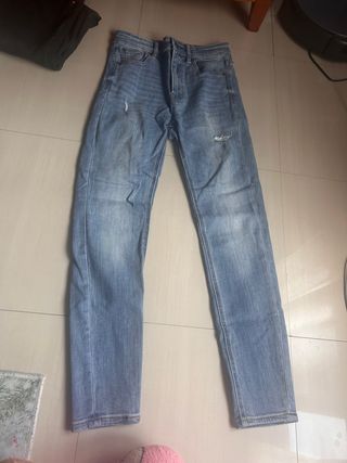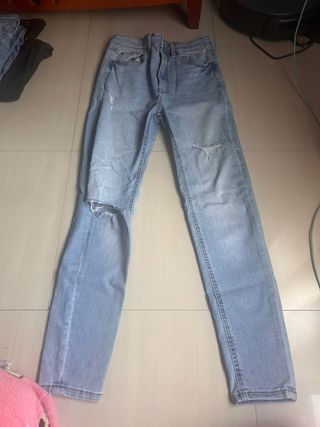 Jeans ajustados para mujer con un diseño moderno y detalles únicos. - Corte skinny. - Lavado en tono azul. - Bolsillos traseros con adornos y botones metálicos - Cierre de botón y cremallera. Sólo usado una vez, está nuevo. Puede ver más cosas interesantes en mi perfil.
