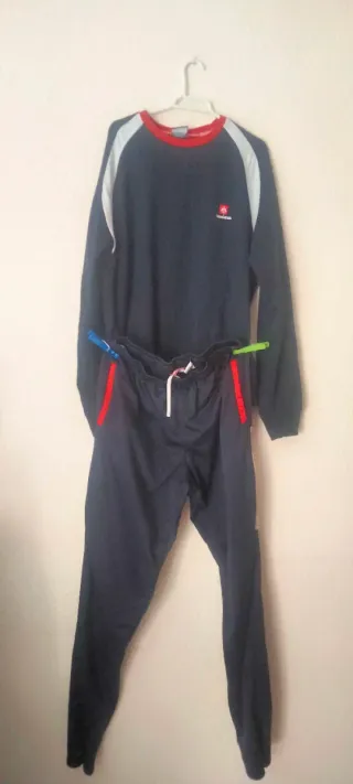 Conjunto deportivo escolar de dos piezas. - Sudadera azul con detalles en blanco y rojo. - Pantalón azul con detalles en rojo y cordón blanco,blusa de deporte en blanca y con las letras rojas