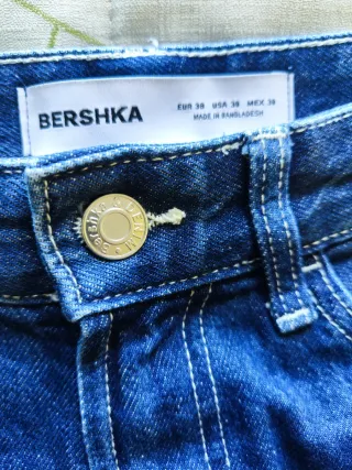 Pantalones cargo de la marca Bershka en color azul. Tienen un diseño moderno y práctico. - Cierre de botón y cremallera. - Múltiples bolsillos. - Costuras visibles.