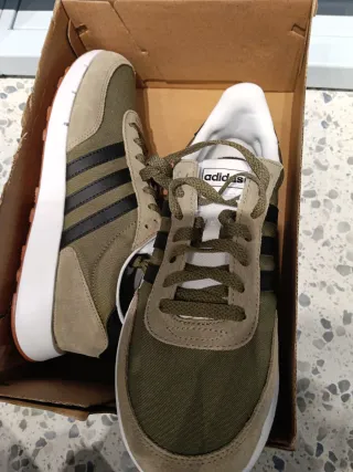 Tênis da Adidas em tons de bege e verde, tamanho 40 2/3. - Design clássico com as três listras. - Combinação de camurça e tecido.