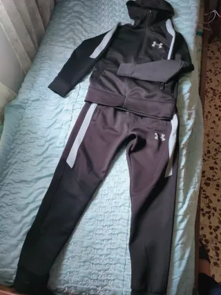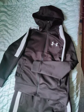 Conjunto de chándal de dos piezas. - Chaqueta con capucha y cremallera completa. - Pantalón con cintura elástica. - Diseño con detalles en contraste en mangas y perneras. - Logo de la marca en ambas prendas.