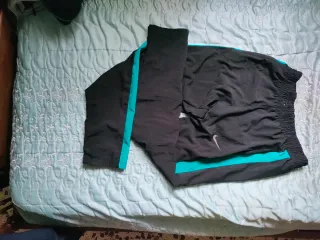 Pantalones deportivos Nike en color negro con detalles en azul turquesa. - Diseño moderno con franjas laterales. - Cintura elástica. - Logo de Nike visible.