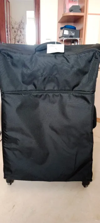 Maleta troley extra grande de color negro, perfecta para tus viajes. 87x25x54. Peso 3,5 kgs Tiene un pequeño defecto que no afecta a su uso. Se ve en la foto. El tirador de la cremallera del bolsillo delantero está partido. Pero se abre y cierra bien - Marca: IT Luggage - Color: Negro - Tamaño: Grande - Con 4 ruedas para facilitar el transporte