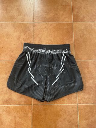 Pantalón corto deportivo para mujer de la marca Asics. - Tejido ligero y transpirable, braga interior - Cintura elástica para un ajuste cómodo. - Diseño bicolor. Color berenjena Talla XS, nuevo a estrenar sin etiquetas