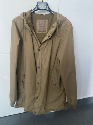 Chaqueta estilo cazadora de Mango. - Color verde militar. - Cierre de cremallera y botones. - Capucha. - Bolsillos delanteros.