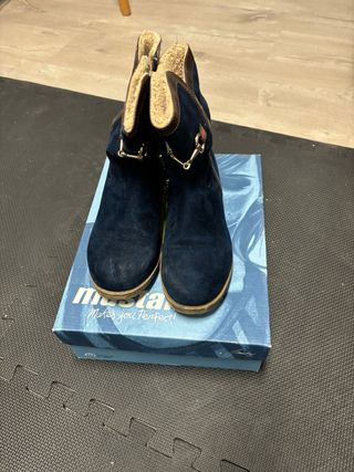 Botas de estilo casual para mujer. - Exterior de ante azul. - Forro interior de pelo marrón. - Detalle metálico en el lateral. #zapatos #zapatosmujer #zapatosazyles #mujer