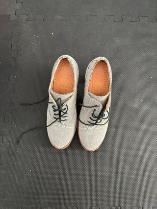 Elegantes zapatos de cordones para mujer con un diseño moderno. - Combinación de colores gris y negro. - Cierre de cordones. - Tacón para un toque de altura.