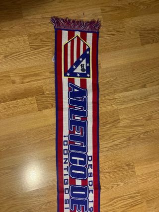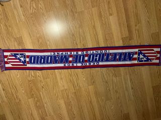 Bufanda del Atlético de Madrid con el escudo y el lema ¡Contigo de Madrid! Desde 1903. Esta nueva y sin uso, sin manchas ni rotos - Diseño con los colores del club. - Borde con flecos.