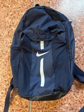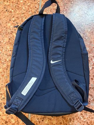 Mochila de la marca Nike con un diseño moderno. - Color azul marino con detalles en blanco. - Logo de Nike visible en la parte frontal.