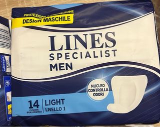 Paquetes de protecciones para hombre de la marca Lines Specialist. - Modelo: Light. - Nivel de absorción: Liviano (Nivel 1). - Diseño masculino. - Control de olores.