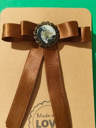 Este bonito lazo está adornado con una flor natural encapsulada en resina y se sujeta con una pinza. Todo hecho a mano. - Diseño elegante con detalles en beige y negro. - Perfecto para añadir un toque especial a tu atuendo. A estrenar!!!