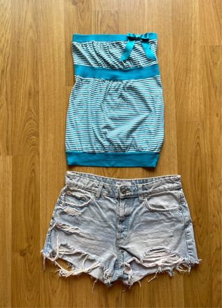 Conjunto de ocho jerseys de diferentes tallas y colores, con un regalo adicional. - Jersey blanco y gris con cuello redondo. - Jersey de rayas negras y blancas. - Jersey lila de punto. - Jersey de bloques de color rosa y gris. - Jersey azul marino. - Jersey de rayas azules y verdes. - Jersey verde azulado con cuello en V. - Camiseta azul con estampado Miami Florida South Beach. -PRECIO NEGOCIABLE