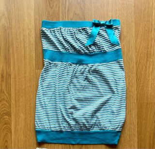 Vestido de fiesta en color marrón clarito/beige, ideal para eventos especiales. Presenta un diseño elegante con detalles en la parte superior. - Diseño con franjas horizontales en el corpiño. - Adorno floral en uno de los tirantes. - Falda con pliegues amplios. -PRECIO NEGOCIABLE