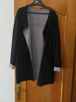 Cárdigan reversible con un diseño moderno y versátil. - Exterior en color negro. - Interior en color gris jaspeado. - Dos bolsillos frontales. - Puños reversibles.