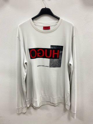 Camiseta de manga larga con un diseño moderno. - Estampado frontal con el logo HUGO en rojo y negro. - Detalle de texto YOUR TIME IS NOW en la parte inferior. - Cuello redondo y manga larga.