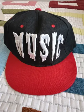 Gorra de estilo snapback con el diseño Music bordado. - Diseño frontal Music en blanco. - Visera plana. - Cierre ajustable.
