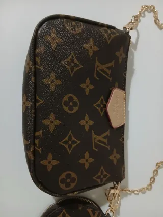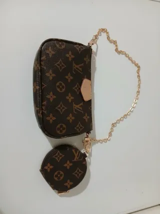 Es un regalo repetido y no lo quiero. Conjunto de bolso y monedero con el icónico estampado. - Bolso de mano con cadena dorada. - Monedero redondo a juego. - Detalles en tono dorado. No envio. Entrego en mano en Humanes de Madrid.