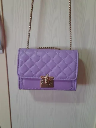 Bolso pequeño de color morado con un diseño acolchado y un cierre metálico con forma de abeja. - Cadena dorada para llevar al hombro o cruzado. - Detalle de abeja dorada en el cierre. - Diseño acolchado tipo diamante. No envio. Entrego en mano en Humanes de Madrid.