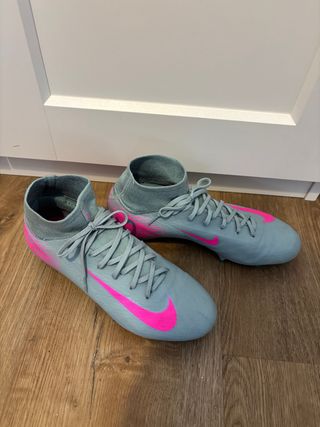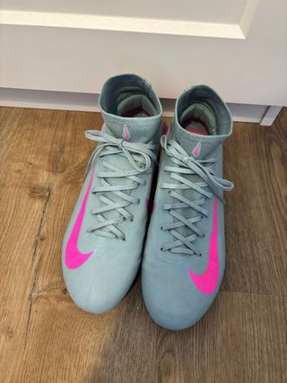 Botas de fútbol Nike Mercurial Superfly 10 en color gris y rosa. - Diseño de media caña. - Cierre con cordones. - Swoosh de Nike en contraste.