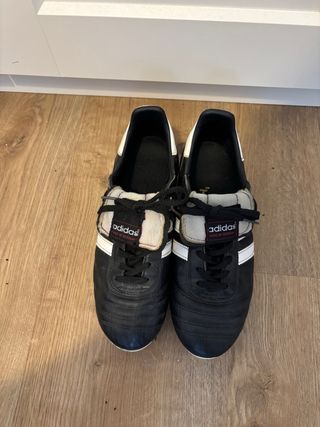 Botas de fútbol clásicas Adidas Copa Mundial. - Diseño icónico en negro y blanco.