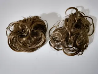 8€ cada uno. Dos postizos de pelo sintético para crear recogidos o dar volumen. Son fáciles de colocar y dan un toque natural. - Color marrón con reflejos dorados. - Textura rizada y voluminosa. No envio. Entrego en mano en Humanes de Madrid.