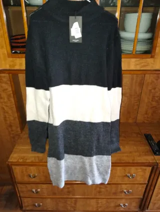 Vestido de punto de la marca Brave Soul, sin estrenar y con etiquetas. - Diseño de bloques de color en negro, blanco y gris. - Cuello alto. - Manga larga.