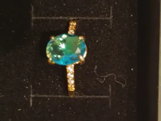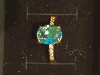 Elegante anillo chapado oro y una circonita sintética azul que aporta un toque sofisticado. Ideal para uso diario y ocasiones especiales. - Diseño ovalado de la gema con engaste de cuatro puntas. - Detalles de pequeñas circonitas en la banda.