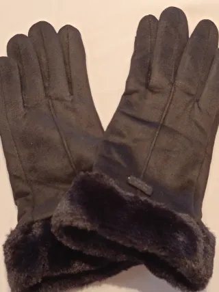 Guantes de invierno para mujer con detalle de pelo sintético en el borde. Elegantes, suaves y muy cómodos para los días fríos. Es una talla M. Ideales para completar un look de invierno con estilo. - Diseño sofisticado. - Material exterior de tacto aterciopelado. - Borde de pelo sintético - Suaves y calentitos - Nuevos, sin uso