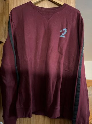 Sudadera de color granate con detalles en las mangas y un logo en el pecho. - Diseño con franjas laterales. - Logo en la parte frontal.