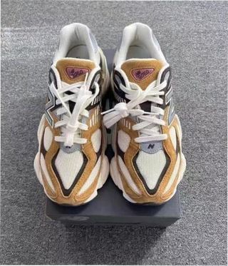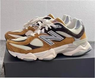 Zapatillas New Balance 9060 en talla 36. Un diseño moderno y cómodo. - Combinación de colores beige y marrón. - Estilo deportivo y urbano.