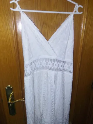 Vestido largo de encaje con un diseño delicado. - Tejido de encaje blanco. - Largo hasta los tobillos. - Detalle de pantalón interior. - Precio negociable.