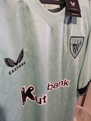 Camiseta de la tercera equipación del Athletic Club para la temporada 2025-2026. Diseño moderno y llamativo. - Tejido ligero y transpirable. - Escudo del club bordado. - Logo de la marca en la manga. - Patrocinador principal en el frontal.
