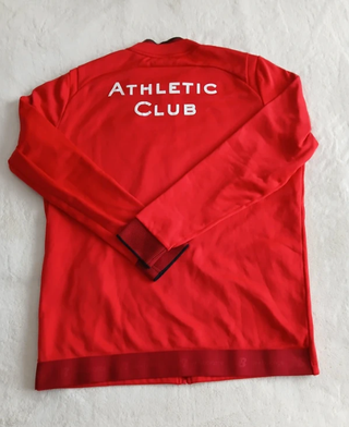 Sudadera del Athletic Club de la temporada 2025-2026. El escudo presenta algo de desgaste, se puede ver en la última foto. - Color rojo con diseño estampado. - Cuello redondo con media cremallera. - Logo de Castore en el pecho. - Escudo del Athletic Club en el pecho.