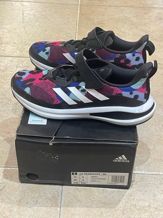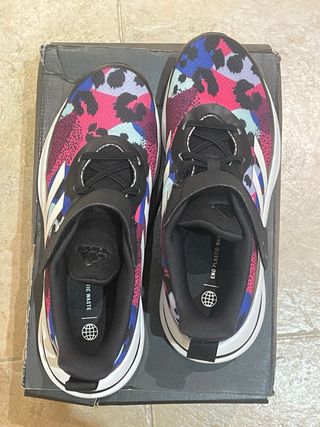 Zapatillas Adidas Ultraboost 20 con un diseño llamativo. - Parte superior con estampado multicolor. - Cierre de velcro para un ajuste fácil. - Tira de Adidas en los laterales. Utilizadas en dos ocasiones, me van grandes