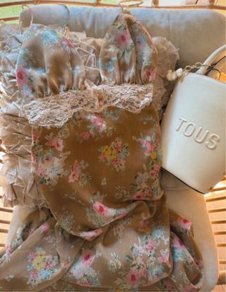 Vestido de Zara con un bonito estampado floral. - Diseño con tirantes finos. - Detalle de encaje en el escote. - Tejido ligero y vaporoso.